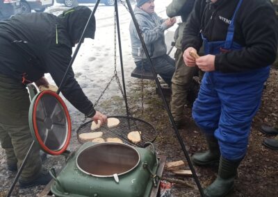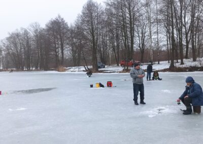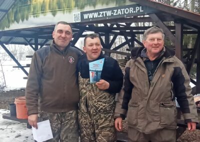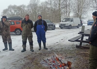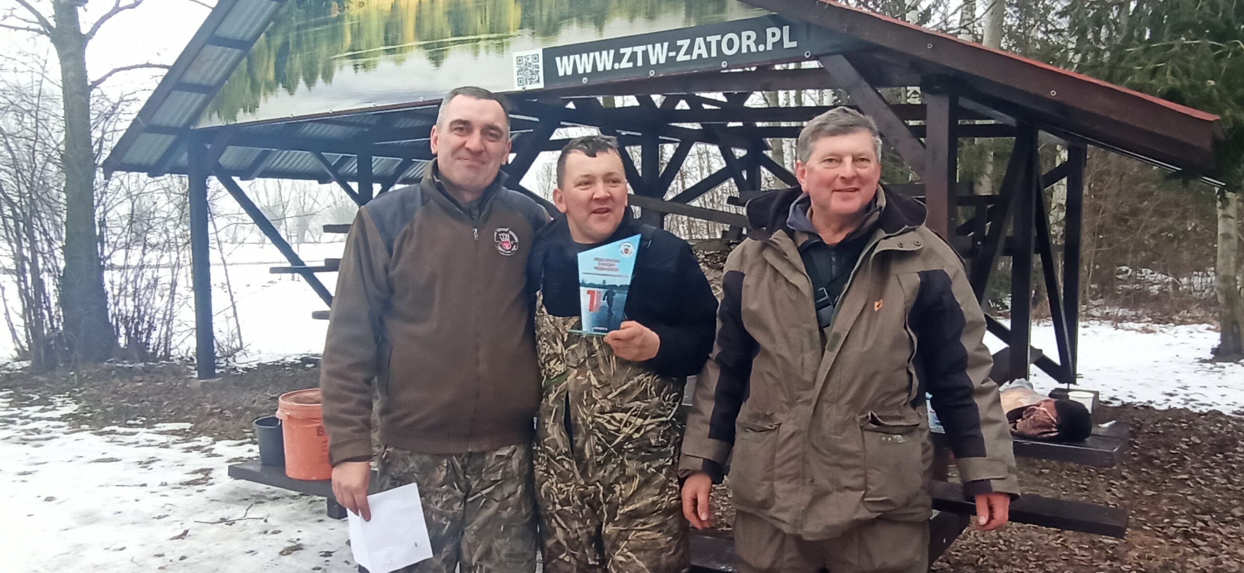 W dniu 25 stycznia 2026 r. odbyły się pierwsze w tym roku zawody wędkarskie. Dzięki grubej pokrywie lodowej na zbiorniku Tęczak w Trzebieńczycach można było bezpiecznie zorganizować i przeprowadzić podlodowe zawody wędkarskie. Oczywiście impreza rozpoczęła się od gorącej herbaty, kawy, słodkiego poczęstunku to wszystko można było skonsumować przy ognisku. W zawodach wzięło udział czternastu zawodników. O godzinie 10:30 odbyła się odprawa przed zawodami na której omówiono zasady wędkowania, następnie zawodnicy udali się na upatrzone przez siebie miejsca i o godzinie 11:00 rozbrzmiał sygnał oznaczający początek łowienia. W trakcie zawodów dominującym gatunkiem jaki był łowiony okazał się okoń. Po czterogodzinnej rywalizacji nastał czas na podsumowanie wyników i wręczenie pucharów. Oczywiście jak zawsze nie zabrakło gorącego poczęstunku po którym wręczono puchary najlepszym zawodnikom. Pierwsze miejsce zajął kolega Andrzej Rokita drugie miejsce zajął kolega Czekan Dawid a trzecie kolega Ryszard Czekan.